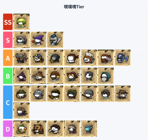 私が考えた現環境城守り最強キャラのティア表です。人によって考えは違うと思いますが、参考程度に見て頂ければ幸いです。